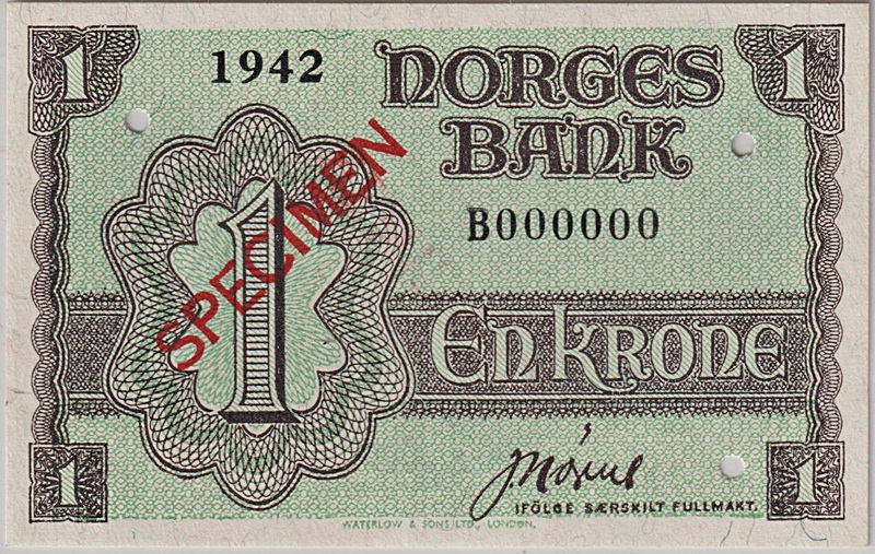 -3- 1 krone 1942 B, London, specimen, kv. 0-
