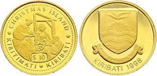 1,24 gr. gull (1/25 unse). Christmas Island, Kiritimata. Illustrasjonsbilder.