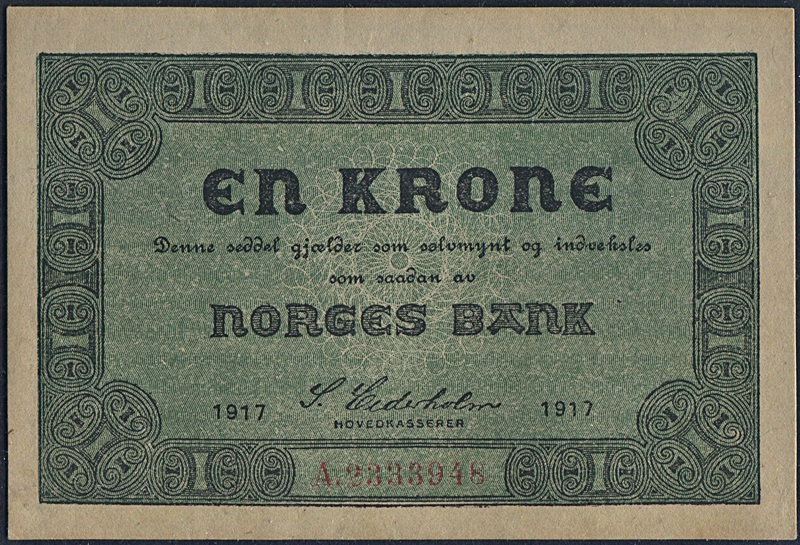 Eks. Bergen Mynt & Seddel. Nr. A2333948. Sign. Sven Michael Cederholm.