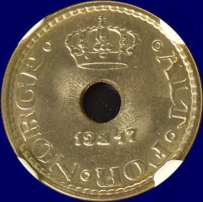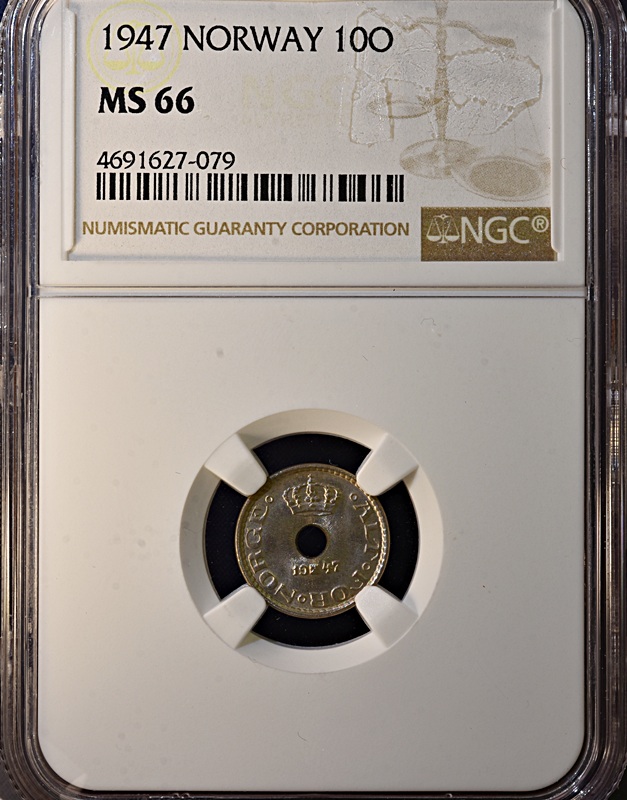 2378634: -1- 10 øre 1947 i NGC-slabb, kv. MS 66