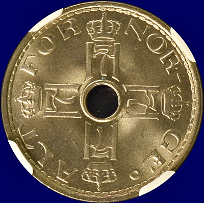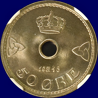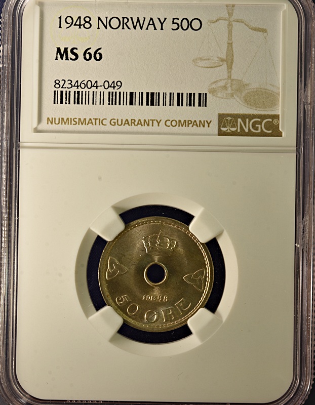 2378638: -5- 50 øre 1948 i NGC-slabb, kv. MS 66