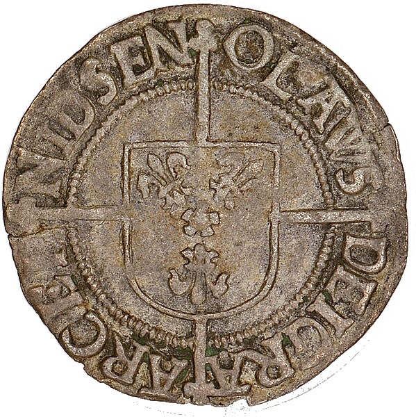 -357- Erkebiskop Olav Engelbrektsson, Skilling Nidaros (ca. 1530) - solgt 26/09-2015 11:26:33