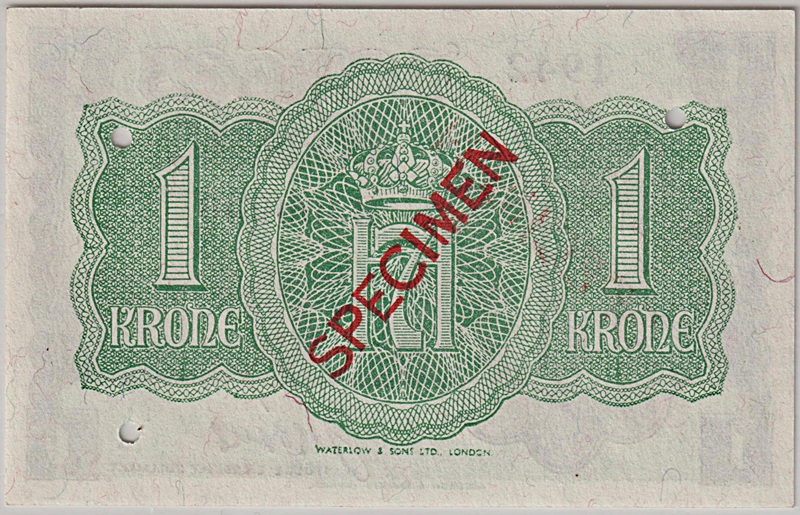-3- 1 krone 1942 B, London, specimen, kv. 0-
