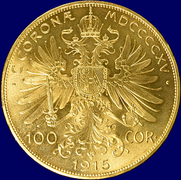 -16- Østerrike, 100 Corona 1915, restrike. Kv. 0, Unc. - solgt 05/12-2025 17:20:00