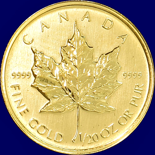 KM.238. 1/20 unse rent gull. (1,56 gr.) Maple Leaf.